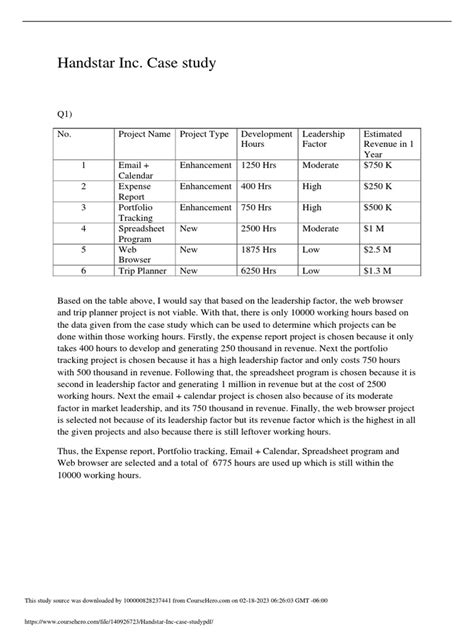 Download HANDSTAR INC CASE SOLUTION Reader BookBoon